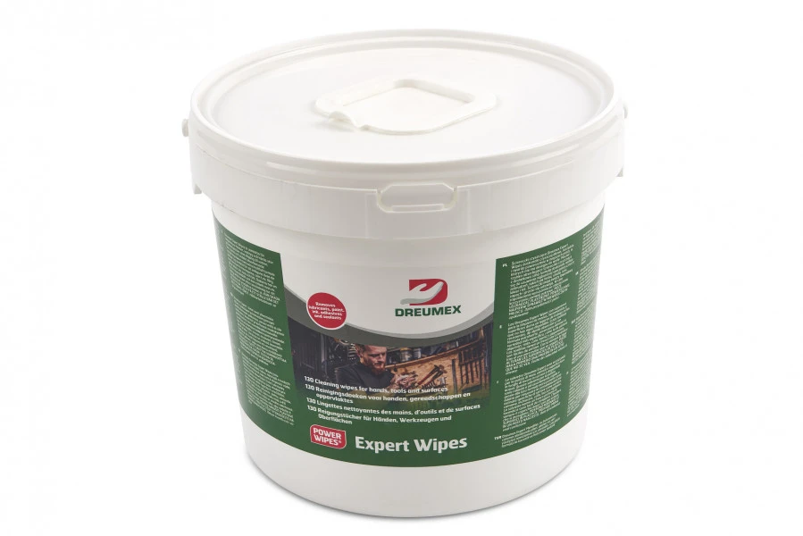 Dreumex Expert Wipes zijn sterke reinigingsdoeken met zeer effectieve vloeistof die zelfs de meest specialistische vervuilingen als verf, lijm, inkt en kit verwijdert van handen, gereedschappen en harde oppervlakken. Daarnaast verwijderen de reinigingsdoeken ook vervuilingen als smeermiddelen, olie en vet. De Dreumex Expert Wipes zijn zeer geschikt voor werkplekken waar geen water in de buurt is. De compacte verpakking is makkelijk mee te nemen en laat zich eenvoudig open- en dichtklikken.