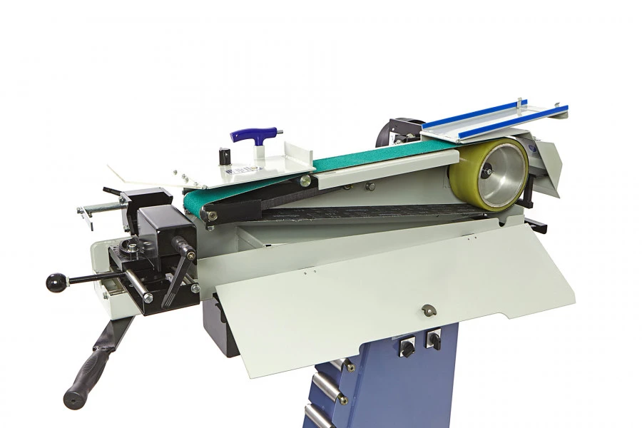 De machine heeft 3 bedienvlakken vooraan voor buizen (met buizenklem), bovenaan voor vlakslijpen en achteraan voor rondslijpen (met werkstuksteun) Buisuitslijper voor diverse metalen buizen en profielen Hoekinstelling buizenklem van 30 tot 90° Eenvoudige klemming en efficiënte werking met hefboomhendel. Prismabek met aanslag, instelbaar zonder sleutels. Sterke motor met 2 snelheden voor verwerken van zowel staal als inox. Snel wisselen van draairichting en snelheid met keuzeschakelaars. Kan aangesloten worden op een stofafzuiging dankzij de afzuigmonden. Gemakkelijke wissel van de schuurband en slijprollen. Veiligheden Voorzien van een aparte noodstop en afzonderlijke start / stopknop Nullastspanning Wegklapbare veiligheidsafscherming. Geschikt voor Buizen en klassieke slijpwerkzaamheden. Ateliers met beperkte ruimtes Werkplaatsen, onderhoudsdiensten, scholen en opleidingcentra.