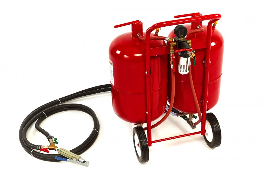 Met deze dubbele straalketel heb je altijd het ideale apparaat om vloeren, wanden, plafonds, machines, onderdelen of andere objecten grondig te kunnen reinigen. Gebruik soda, aluminiumoxide, gemalen glas of een combinatie hiervan om alle verontreinigingen zonder beschadigingen te verwijderen. Bovendien is soda volledig oplosbaar in water, zodat je na afloop niet ook nog eens hoeft schoon te maken. Deze HBM straalketel bestaat uit twee ketels op een verrijdbaar onderstel. De ketels wordt compleet geleverd, inclusief een extra nozzle set, vocht afscheider, vultrechter, beschermkap en een duidelijke handleiding met uitleg over sodastralen.