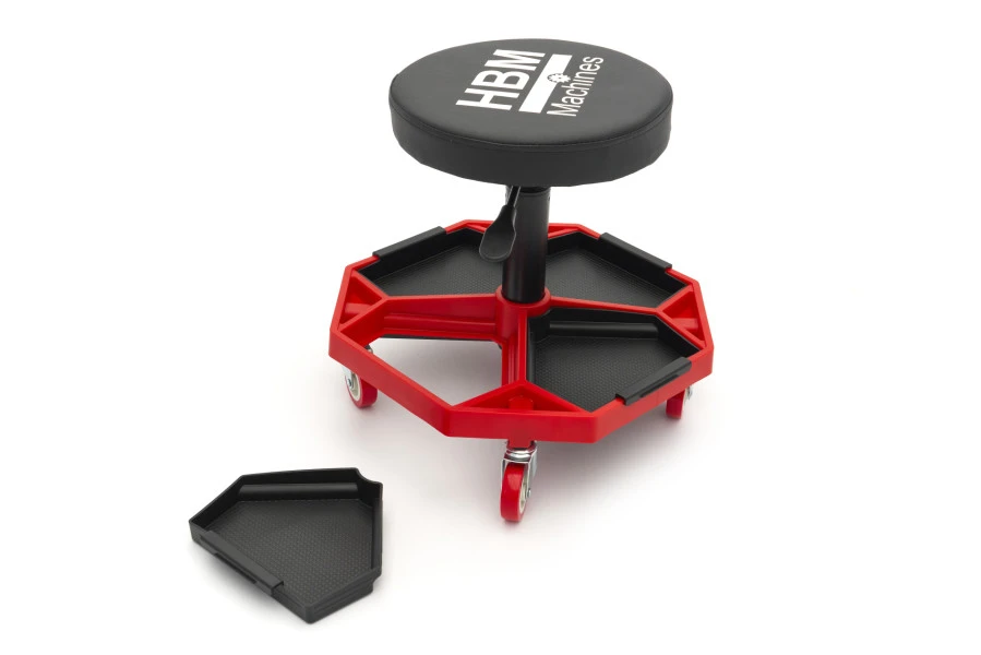 Deze HBM Pneumatische Stoel Met 4 Uitneembare Gereedschaps Trayswerkplaats biedt veel comfort op de werkplaats. De kruk is zeer mobiel door de 4 zwenkwielen. De werkplaatskruk is in hoogte verstelbaar (40 tot 54 cm). Het onderplateau is verdeeld in 4 vakken. Zo heb je altijd je materiaal bij de hand. Het zitvlak heeft een diameter van 30 cm.Â