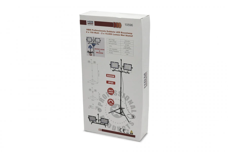 HBM Professionele Dubbele LED Bouwlamp 2 X 150 Watt – 2 X 15.000 Lumen Met Statief