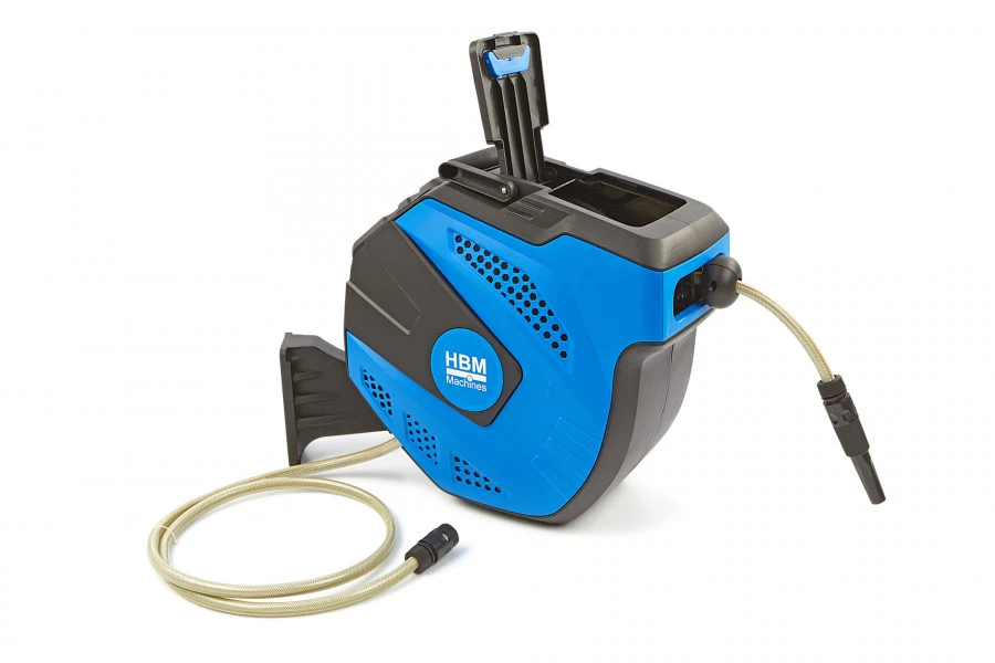 De HBM Waterhaspel, slang-wandcassette beschikt over een automatisch vergrendelings- en intrek-systeem. De slang kan eenvoudig worden uitgetrokken en na montage draait de cassette 180° met u mee zodat elke plek in de tuin kan worden besproeid. Na elke sproeibeurt rolt de slang moeiteloos en zonder verdraaiing weer op. Naast een traploze verstelbare tuinspuit wordt de aansluiting op de kraan meegeleverd. De slang-wand cassette kan eenvoudig middels de meegeleverde beugel aan muur of schutting worden bevestigd. Ook wordt het benodigde bevestigingsmateriaal hiervoor meegeleverd. Tijdens de wintermaanden kan de slang-wandcassette zo nodig voor het opbergen weer losgekoppeld worden. LET OP de 15 meter variant is niet voorzien van de klep boven op de behuizing.