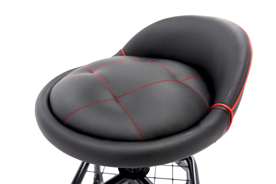 De rugleuning is lang, zodat je optimaal ondersteund wordt, maar niet zo lang dat hij in de weg zit. De poten van dit model bestaan uit hoogwaardig buismateriaal, zodat ze een hoge maximale belasting hebben. Ook geven de vier geïntegreerde zwenkwielen je de mogelijkheid om de stoel snel en veilig te verplaatsen. Daarbij is dit model ondanks zijn robuuste ontwerp toch uiterst beweeglijk doordat het zitvlak helemaal draaibaar is. Het roostervormige frame onderaan en de combinatie van rood en grijs op het zitvlak geven de stoel een professionele, stoere look.