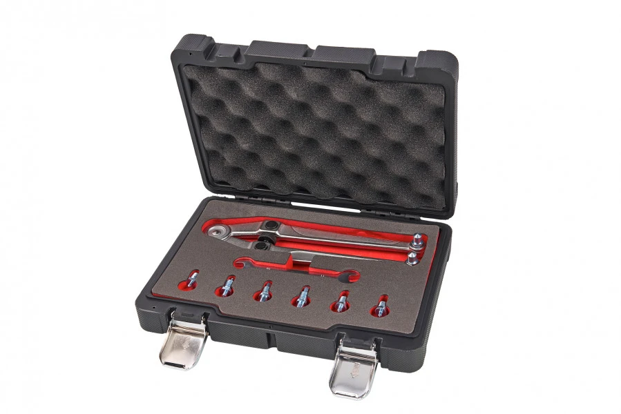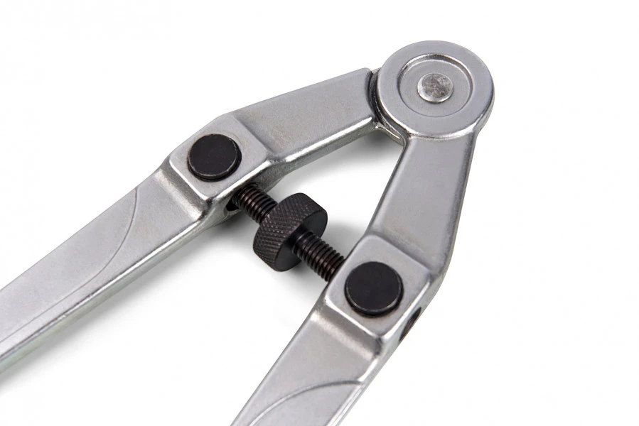 Deze professionele moersleutel is speciaal ontworpen voor het eenvoudig los- en vastdraaien van moeren met boorgaten op de bovenkant. De sleutel is voorzien van tal van handige eigenschappen. Zo beschikt de sleutel over afneembare dubbele en vierkante stiften en wordt de sleutel geleverd met vier sets van twee stiften met twee maten aan beide zijden. De sleutel kan daarnaast geheel naar wens afgesteld worden als een passer met behulp van de centrale moer.