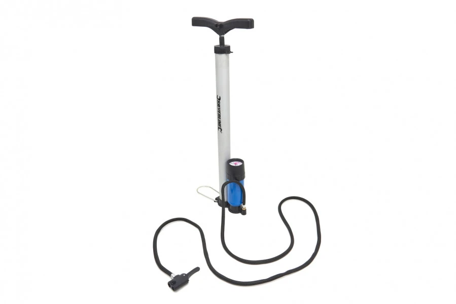 Deze lichtgewicht Silverline handpomp is ideaal om in huis te hebben. Deze handpomp is zeer geschikt voor het oppompen van fietsbanden, stootkussen, luchtbedden. Met deze handpomp kun je tot een druk van 7 Bar of 100psi pompen. De 2 meter lange slang geeft je genoeg bewegingsruimte. De sterke voet zorgt daarnaast voor een uitstekende stabiliteit. Je kunt de pomp zelfs gebruiken om je werkbank mee schoon te blazen, of voor het schoonblazen van een klein luchtfilter.